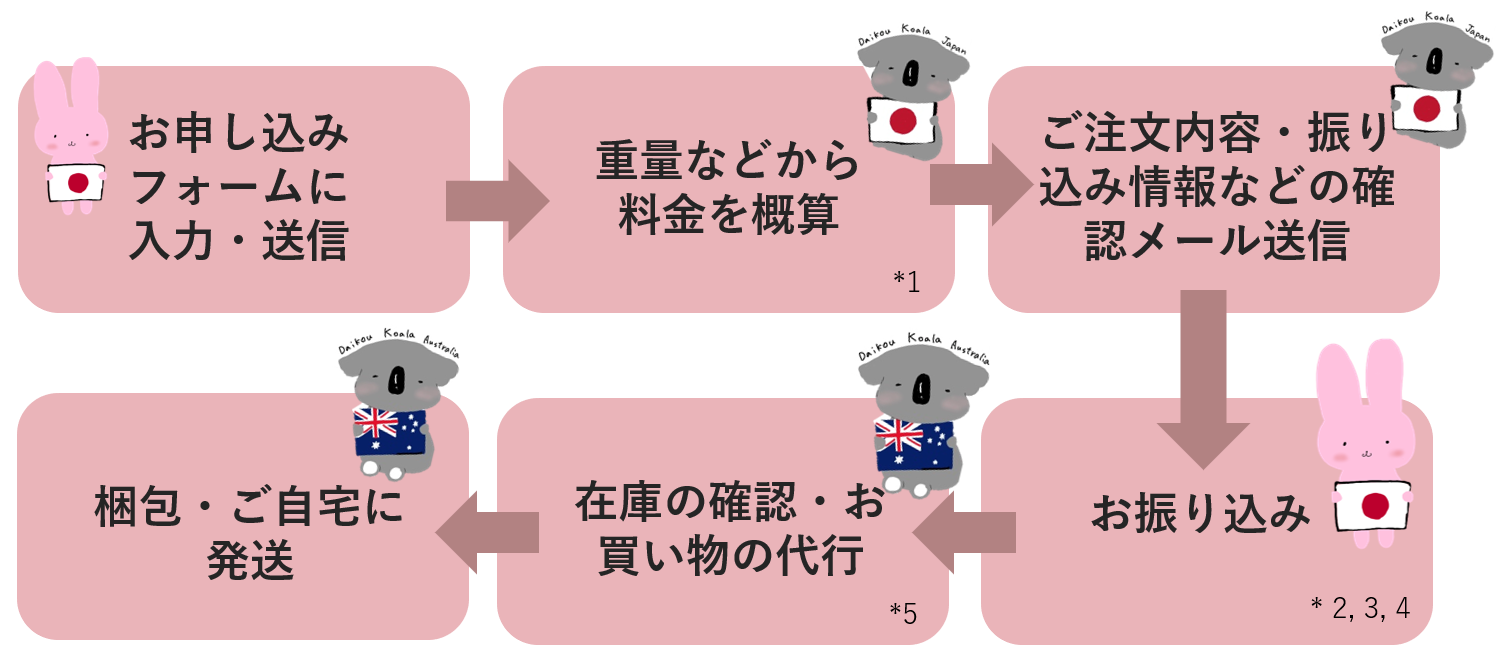 *2 振込完了を確認次第、在庫確認・お買い物代行いたします。